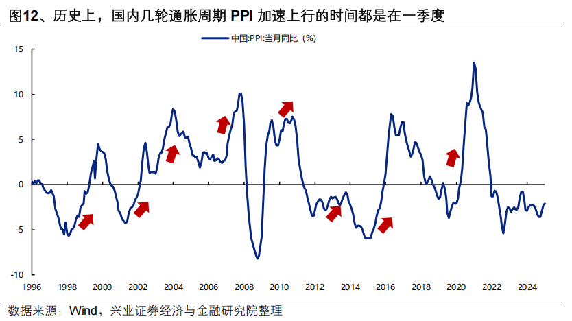 一方面,春节后进入开工旺季,将是验证涨价的重要窗口。国内经济每年有两个传统旺季,分别是“金三银四”和“金九银十”,是全年工业生产、基建开工、地产销售等领域较为活跃,供需两旺的阶段,也是涨价线索易于扩散的阶段。观察细分品种的价格数据变化,在每年两个旺季阶段,涨价的细分品种也随之增加。历史经验看,国内几轮通胀周期PPI加速上行的时间也都是在一季度。