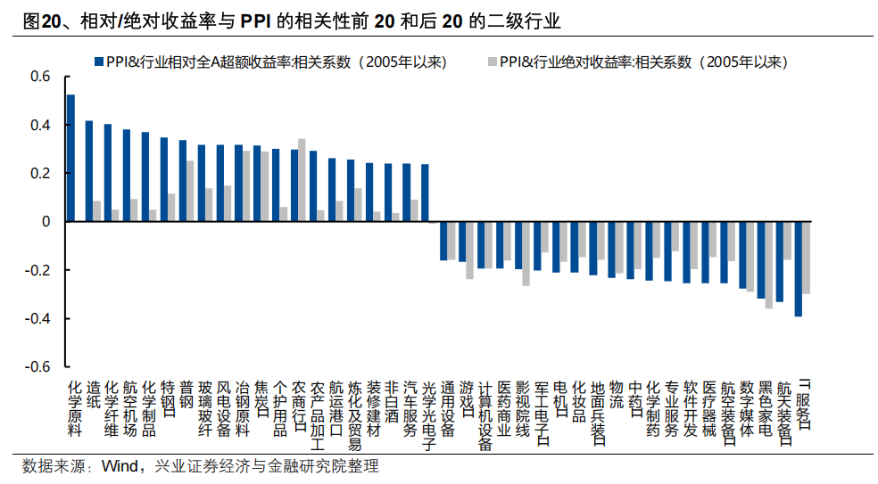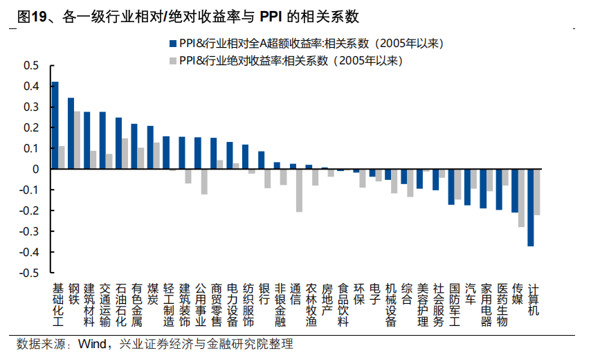 资源品方面,3-4月作为国内验证涨价和交易涨价的重要窗口,如果后续PPI能够继续验证价格改善,国内涨价对于资源品股价的提振作用需要进一步提起重视。细分行业方面,我们统计了2005年以来各一级和二级行业股价与PPI的相关性,相对收益率与PPI正相关性居前的行业主要集中在化工、钢铁、建材、石化、有色、煤炭。