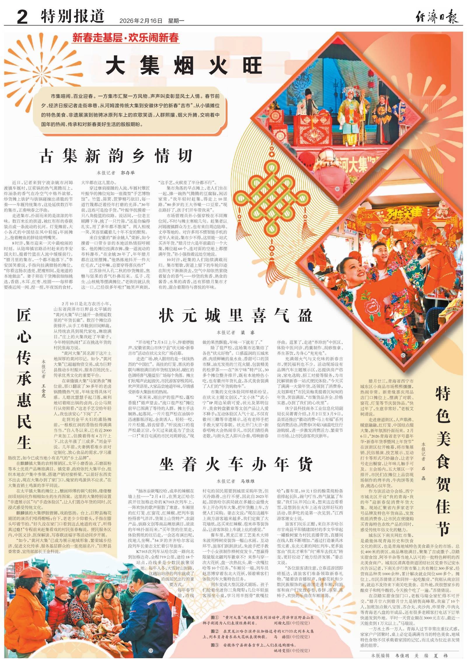 市集喧闹,百业迎春。一方集市汇聚一方风物,声声叫卖彰显风土人情。春节前夕,经济日报记者走街串巷,从河姆渡传统大集到安徽休宁的新春“吉市”,从小镇摊位的特色美食、非遗展演到驰骋冰原列车上的欢歌笑语,人群熙攘,烟火升腾,交响着中国年的热闹、传承和对新春美好生活的殷殷期盼。